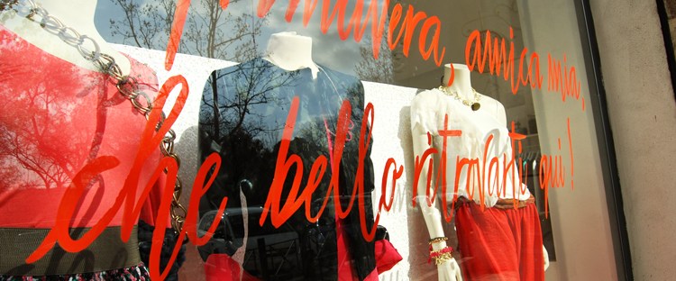 Poi un giorno io e la mia amica Marika abbiamo inventato shoptellers (la storia puoi leggerla qui) e Giralamoda Lab, la nostra boutique preferita, ci ha chiesto di metterci all’opera sulle sue vetrine.